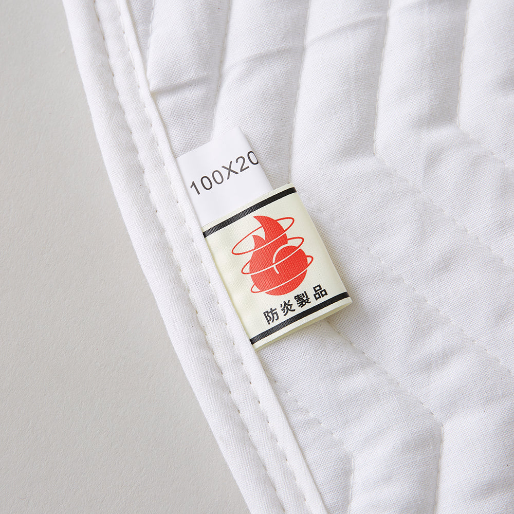 ホテル仕様業務用のベットパッド。ポリエステル綿350g/㎡ 防炎ラベル付き